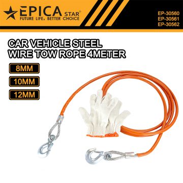 EPICA STAR Car Vehicle Steel Wire Tow Rope 4Meter *8mm *10mm *12mm Vehicle Emergency Steel Cable Towing 5Ton Max Load